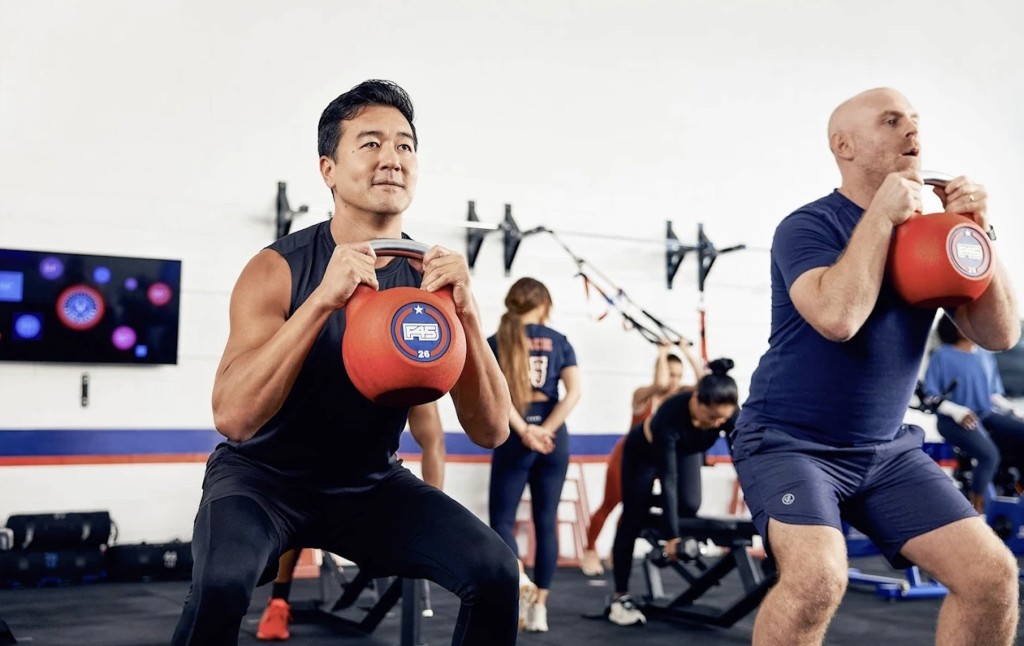 Workouts are typically run by two or more coaches per class. To support the coach, clients are guided by screens that display each exercise as well as beeps and graphics that cue you to work, rest or move to your next station.