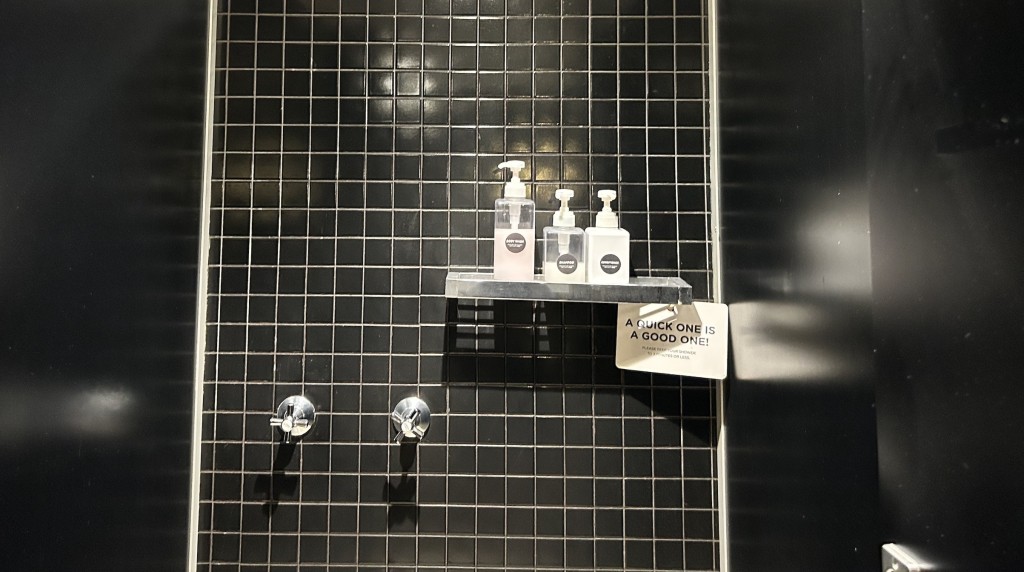The waiting area was spacious with adequate seating and appropriate music levels. Changing areas were clean and neatly presented, with amenities such as hand wash, deodorant and grooming items available. Showers and toilets were in good condition with strong water pressure and essential products provided. Towels were complimentary and handed directly to us. One toilet was out of service, and there were no hairdryers or food options. Overall, public areas were well maintained.