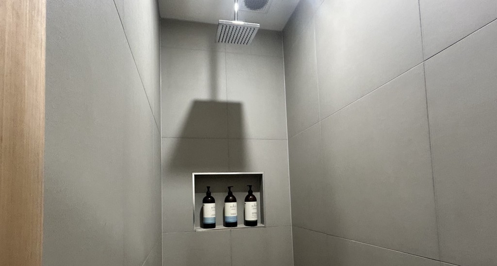 Changing and wet areas were clean and maintained. Showers and toilets were hygienic with reliable water pressure, and amenities were neatly presented. The changing area was compact with limited bench space. Lockers did not include locks or hangers, and complimentary shower towels were not provided. Hairdryers were not available. Beverage options included free water and paid drinks, with no food offerings.