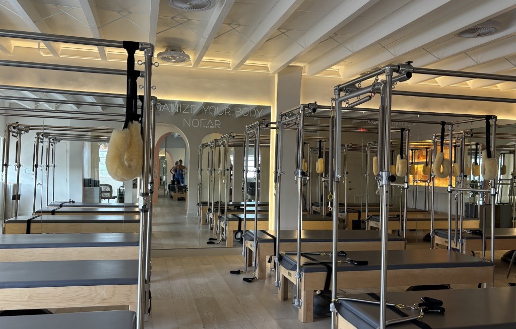 The signature sessions include The Nofar Method Class, the studio’s main full-body experience, and Open & Stretch / Restorative Pilates, a gentler option ideal for recovery or prenatal clients. Grip socks are required, and while there are no showers, restrooms and grooming areas are available. Bookings are handled through Mindbody, and the studio’s polished design and personalized coaching aim to make every visit feel like a luxury fitness experience.