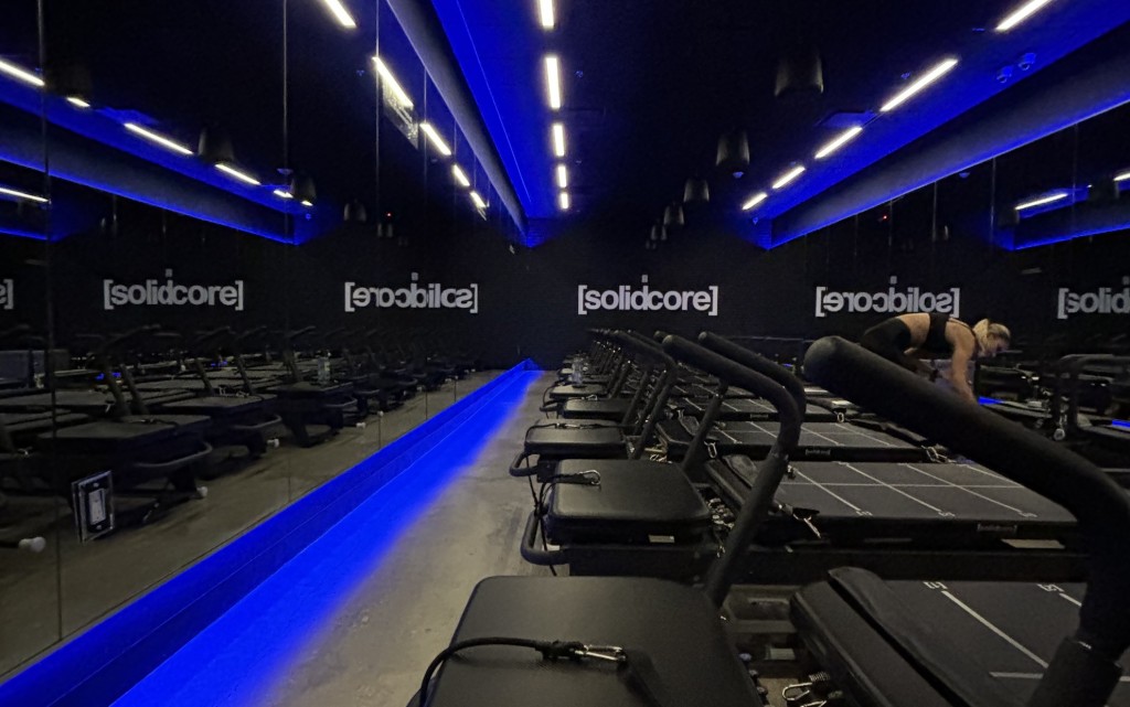The sleek, blue-lit studio design and spotless, custom reformer machines created an inspiring environment that perfectly reflected the [solidcore] brand.