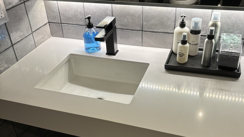Overall, the public areas balanced form and function well, offering a polished yet welcoming environment that complemented the brand’s sleek studio aesthetic.
