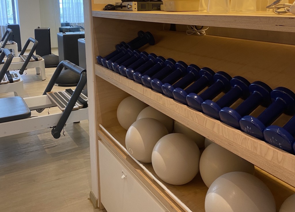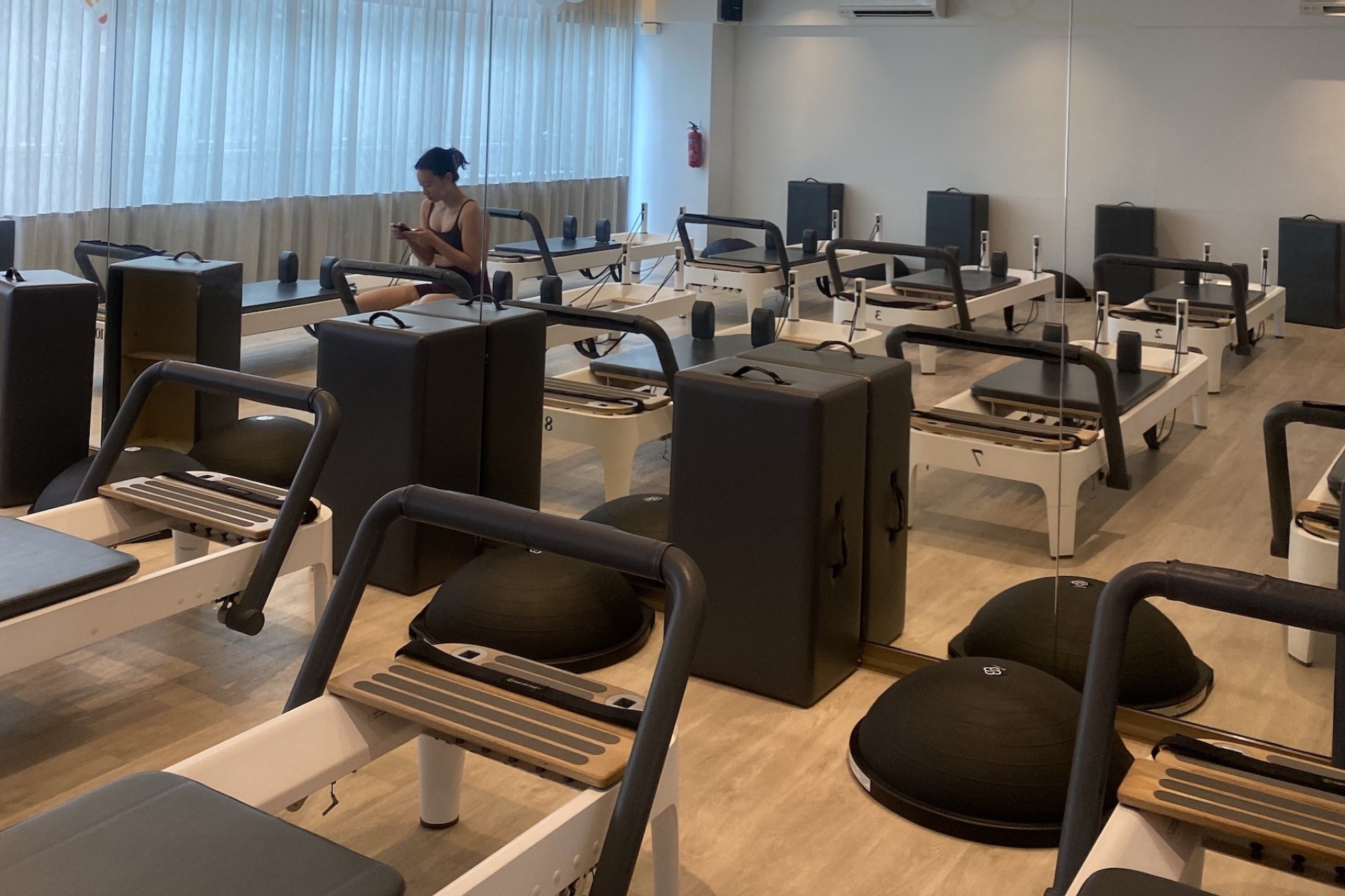 Training in the studio felt clean, calm and well put together. All the Balanced Body reformers were in great condition and laid out neatly, so moving around and settling into each exercise felt natural. The light wood floors paired with monochrome equipment gave the room a relaxed, understated look that suited the Pilates flow well.