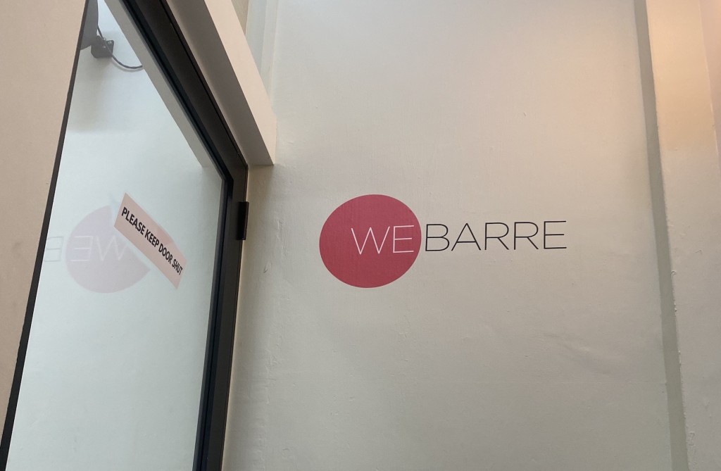 WeBarre Holland Village carried its boutique feel through the entire space. Clear signage and refined branding marked the entrance, while the interior paired clean lines with warm wood finishes and bright, natural lighting. The waiting area was compact but comfortable, offering a calm place to pause before class.